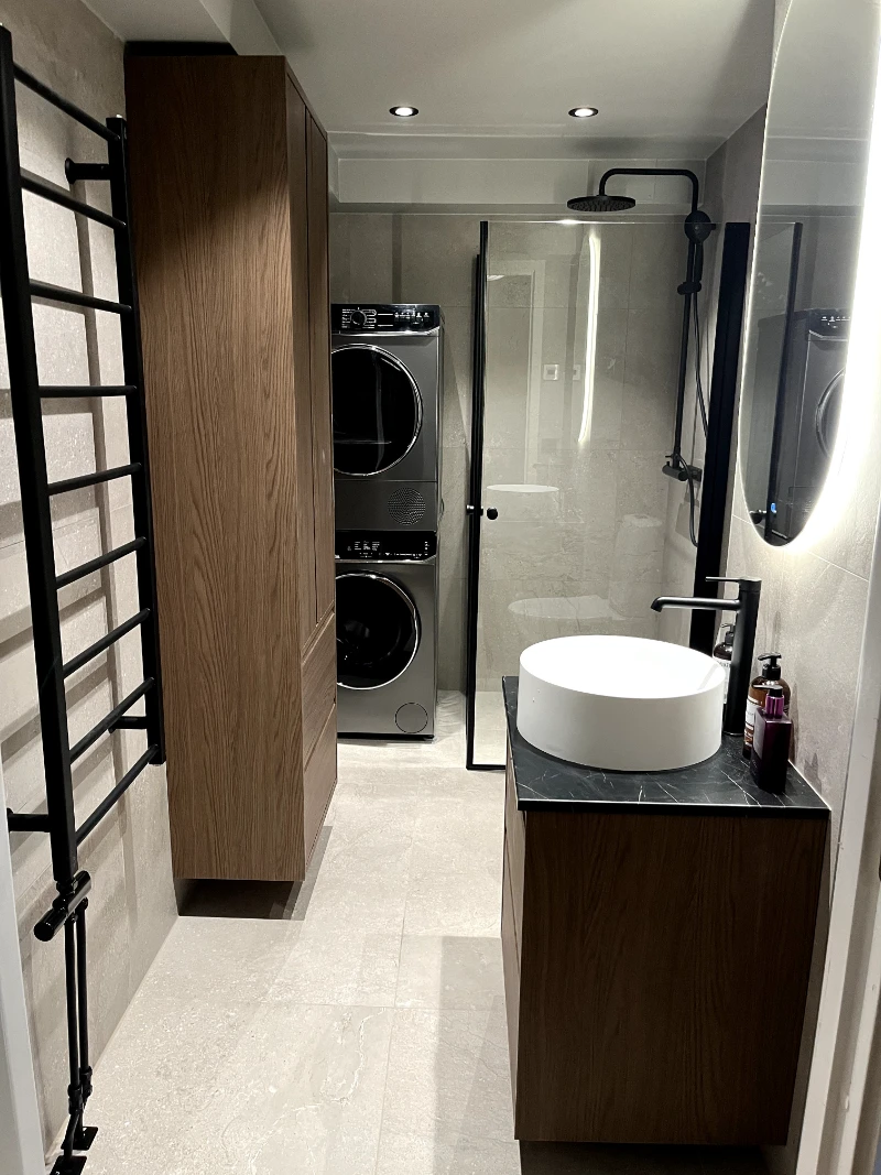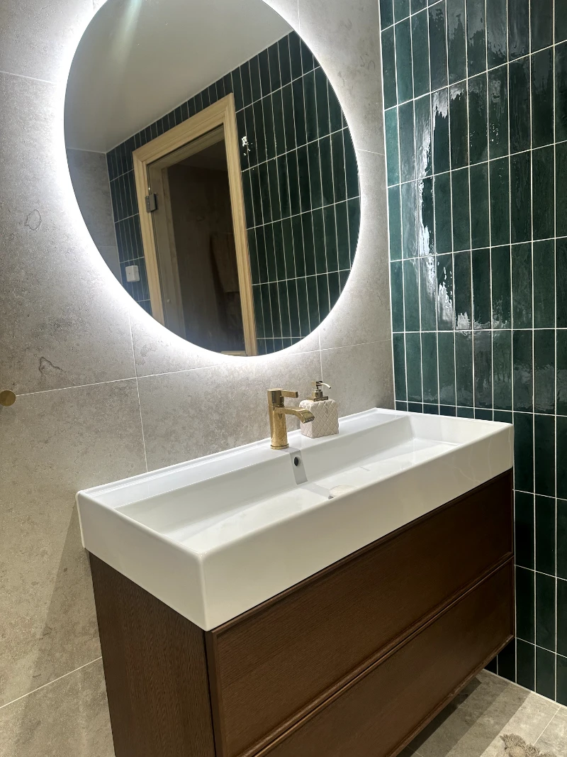 Vi avslutar med att installera inredning som kommoder, duschväggar och belysning. Därefter genomför vi en slutkontroll för att säkerställa att allt är i sin ordning.